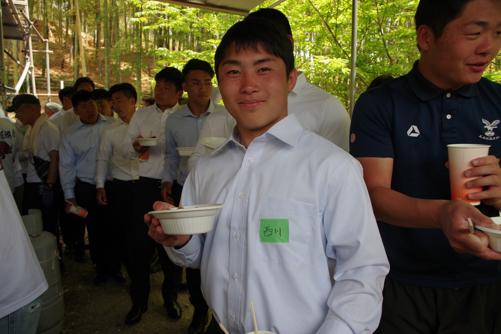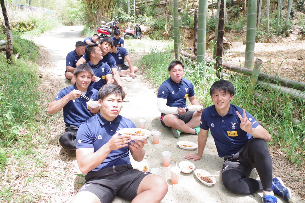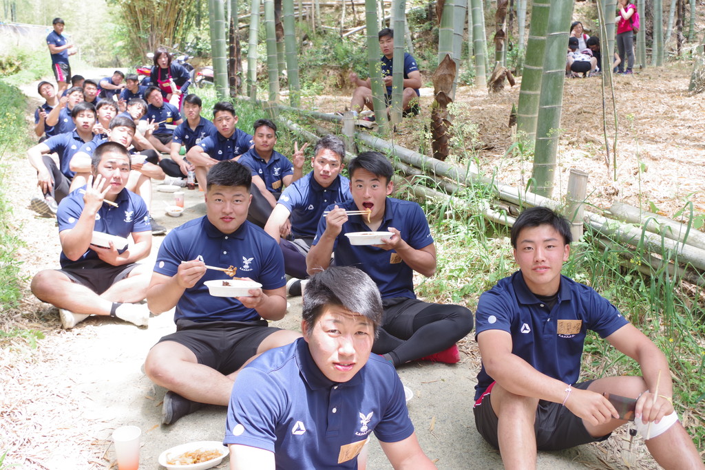 地元食材・旬のたけのこをふんだんに使ったたけのこご飯も大きな窯で炊き上げられ選手たちは大盛りのごはんを何杯もおかわり。