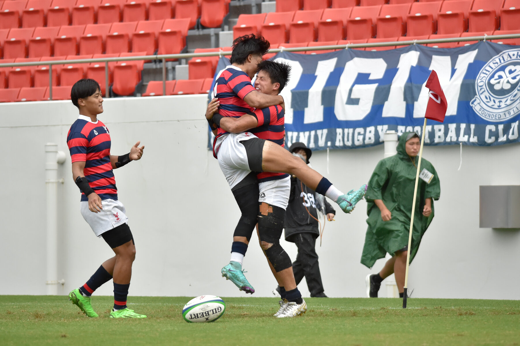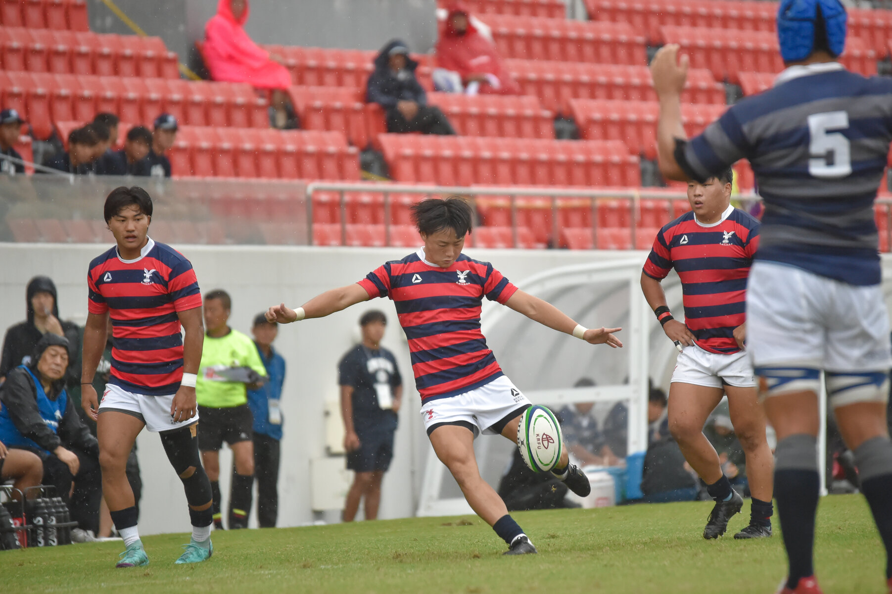 この日9番を背負ったのは4年生の土永。武器である左足のキックが冴え渡り、何度もチームに好機を生み出した。試合途中から辻野に変わってゴールキックも蹴った。「菅平合宿の明治戦以降練習していなかったんですけど、全部入って良かったです。1本目蹴った時に『今日当たる日やな』と思いました」(土永)と圧倒的なセンスを見せた。今のチームにはゲームコントロールできる選手が辻野、尾崎、奈須の3人いるという状況。「3人の動きを見ながらどういった動きをとっていくのか考えてました」(土永)と話すように、トリプルSOの強みをそれぞれ生かすパスを出した。土永のキックとパスが今後の試合でも勝利のカギを握る。
