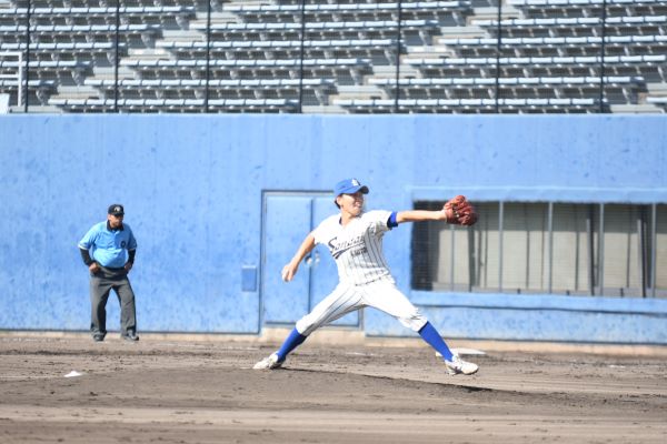 試合は、京産大が後攻として始まった。先発は、昨年もこの舞台を経験した升田。「最初は力んでしまったが、落ち着いて投げることを意識した」と、初回、四球を与えながらも先制は許さない。2回にこそ適時打を浴び、1点を失うもそれ以上はピンチを広げることなく、追加点を許さないピッチングで相手打線を封じ込めていく。5回からは、変則フォームの2年生右腕、伊藤がマウンドを任される。先頭打者にヒットを許すも、後続を断ち切り反撃を許さない。