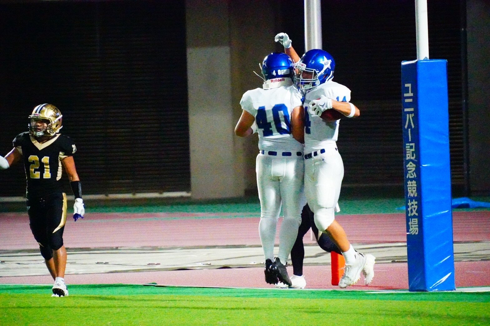 第2Qは相手に攻め込まれる場面もあったが、立て続けにQBサックを決めてピンチをしのぐ。さらに相手のキックを大島惇也(現4)がブロックすると、竹村律希(営4)がインターセプトリターンTDを奪取。守備から得点を重ね16-0と突き放した。その後に失点を許したものの、前半を16-7で折り返した。