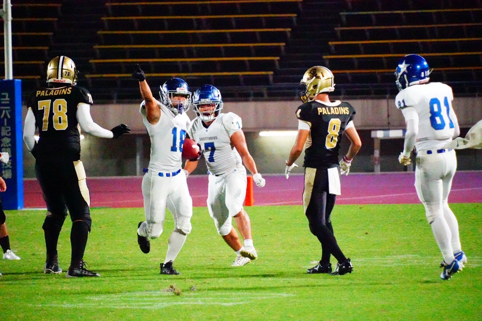 第4Qもディフェンス陣の勢いは衰えない。大島がこの日3度目のインターセプトを奪うと松本から藤原へのパスが成功し、タッチダウン。キックも決まって26-7と勝負を決定