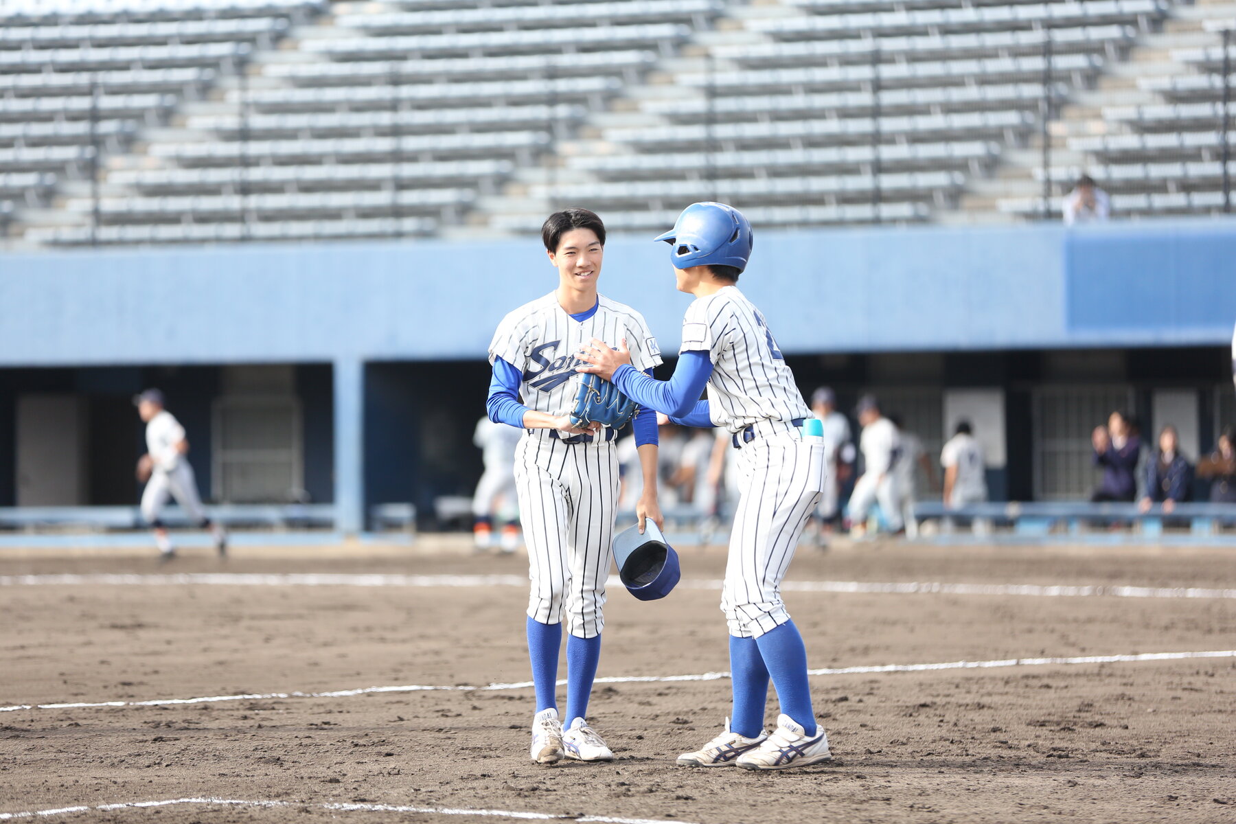 →「内野手陣では、セカンド、ファーストが主将と副主将だった。ピッチャーも下級生だったので、引っ張ると言うよりかは声掛けを意識していました。下級生は、緊張をしていると思うので、声をかけてあげないといけないと思っていました。僕も緊張をしていましたが、楽しみながら声掛けをしていました。エラーはしてしまいましたが、声掛けはしっかりしていました。」