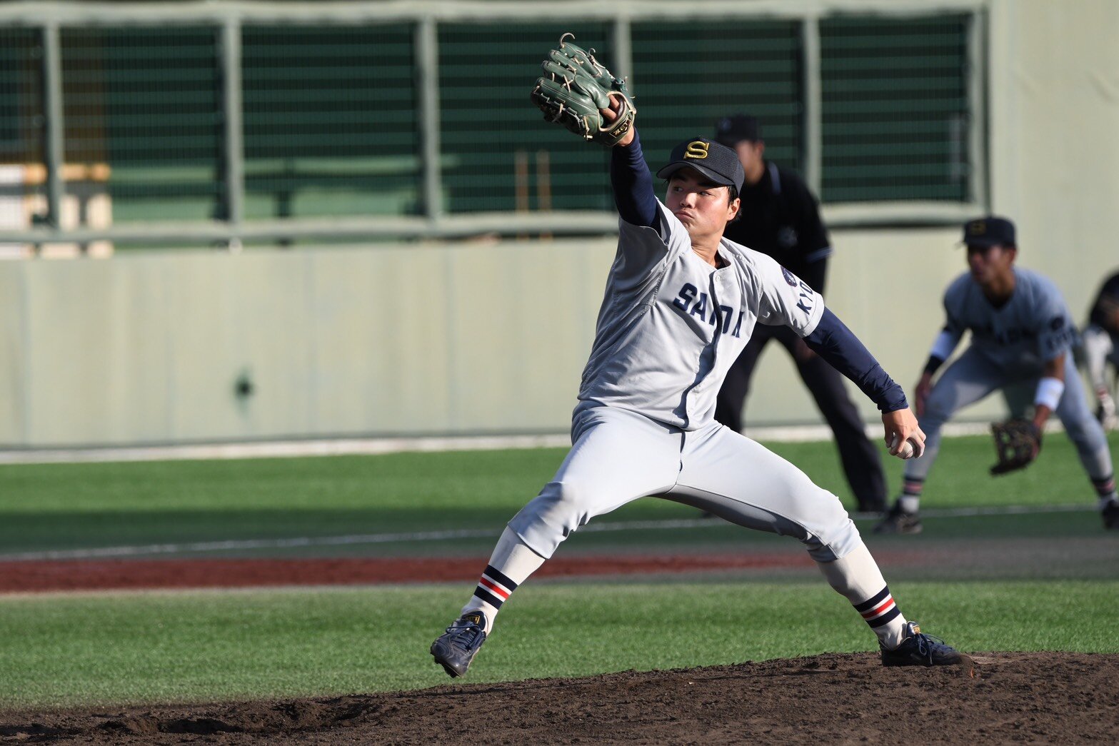 ー京滋のリーグ戦の時から縦の変化球が決まって、いいピッチングをしているというデータが出てましたので、その中でストレートも勢いがあって、その中で中々きっちり捕らえることができなかったと思います。